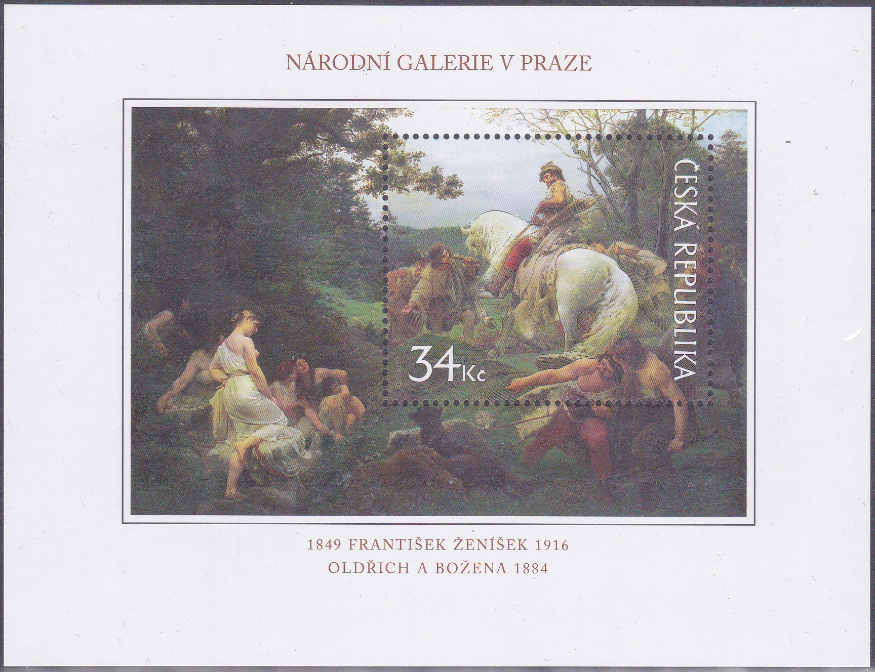 Auf diesem Block aus der Tschechischen Republik (MiNr Block 39 mit Marke MiNr 616) wird das Gemälde "Oldřich und Božena" von František Ženíšek abgebildet.