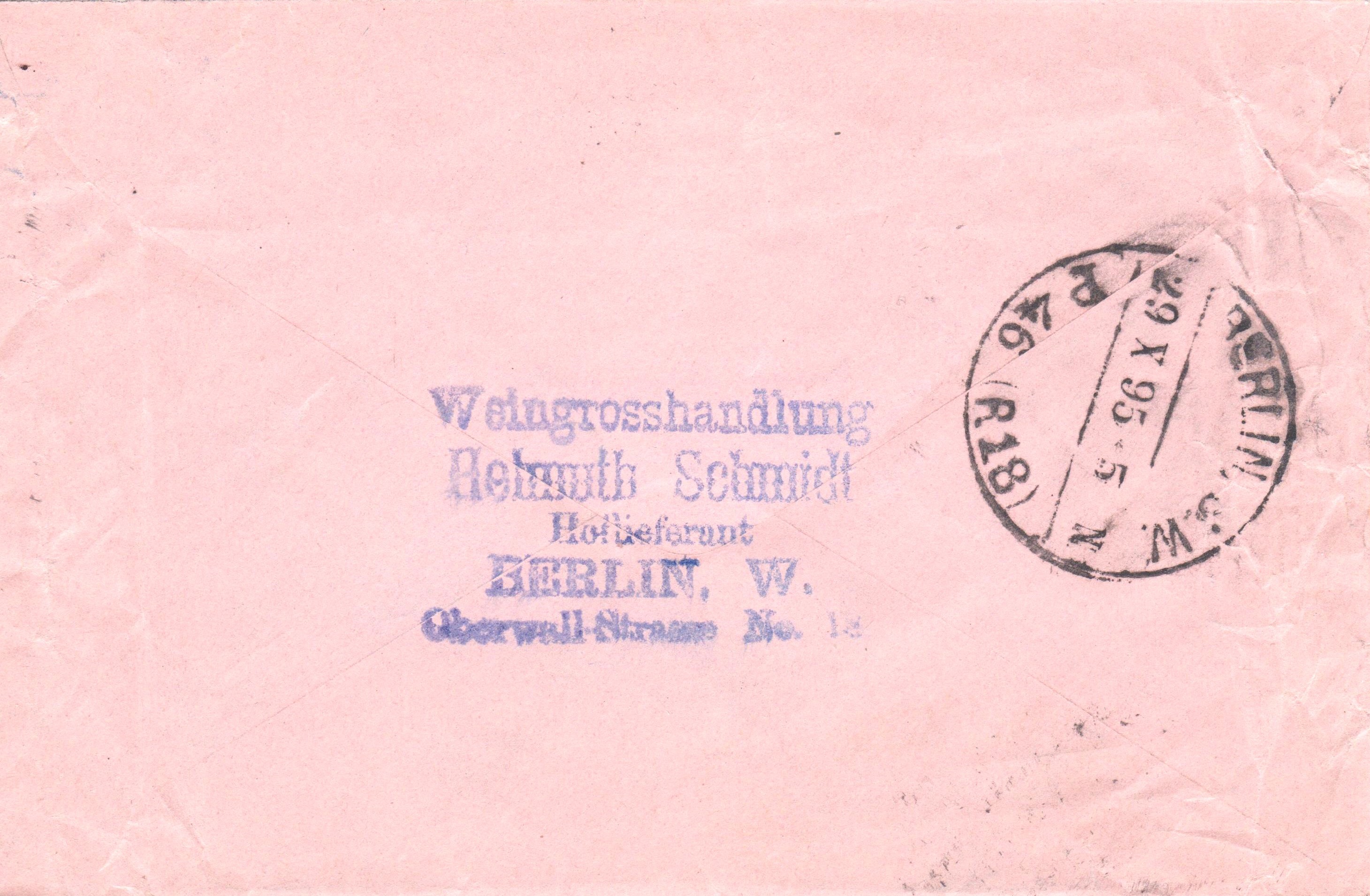 "Rohrpost=Brief", aufgegeben am 29.10.1895 in BERLIN, handschriftlicher Leitvermerk in Rot "46", per Rohrpost befördert via BERLIN, S.W. P 46 (R 18):