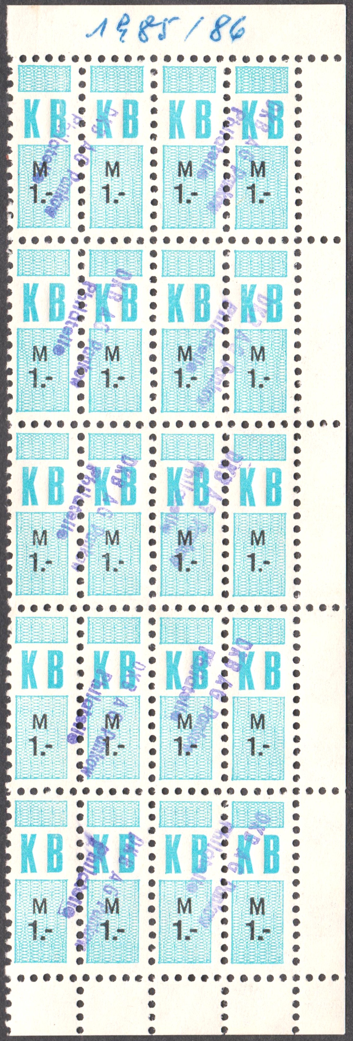 Beitragsmarken des K B, laut handschriftlichem Vermerk aus den Jahren "1985/86"