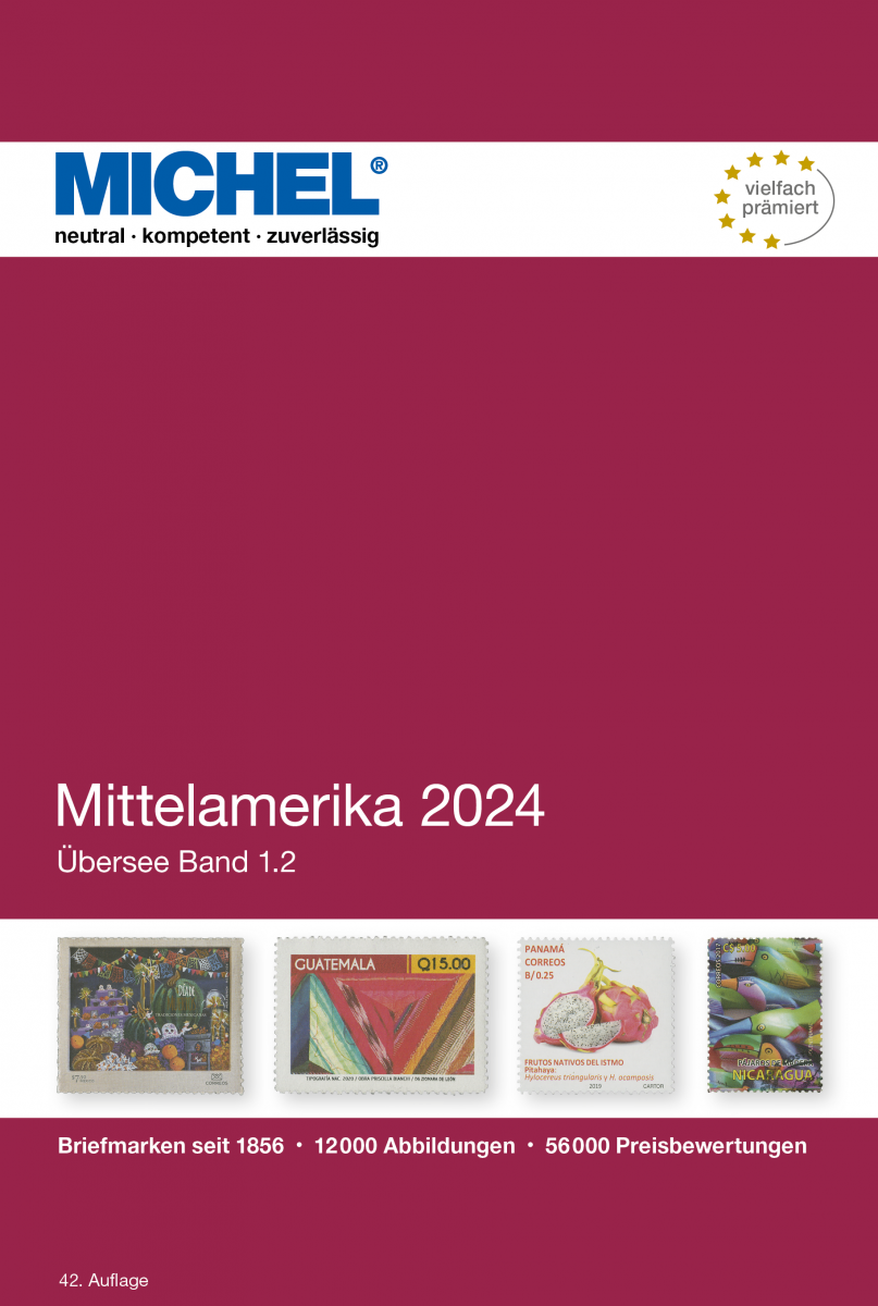 Am 7. Juni 2024 erschien der neue Michel-Katalog Mittelamerika 2024 (ÜK 1.2) in der 42. Auflage in Farbe mit 954 Seiten im Format 155 x 230 mm im Hardcover. Er kostet in Papierform als Katalog 98,00 € und als E-Book in der Online-Bibliothek 69,00 €. Er enthält die folgenden Gebiete: Belize, Britisch-Honduras, Costa Rica, El Salvador, Guatemala, Honduras, Mexiko, Nicaragua, Panama (mit Panama-Kanalzone).