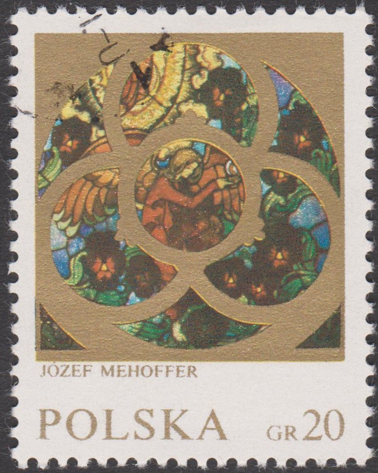 Polen MiNr. 2102 zeigt als Beispiel für Glasmalerei einen "Engel", gemalt 1901 von Józef Mehoffer (1869-1946) aus der Kapelle Troppau: