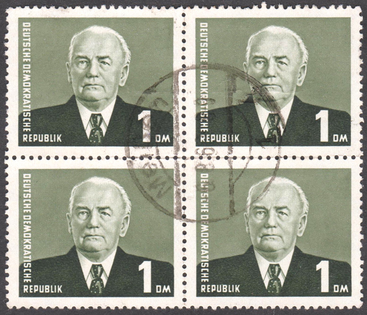 DDR MiNr. 342 als Viererblock, entwertet mit Tagesstempel Meißen: