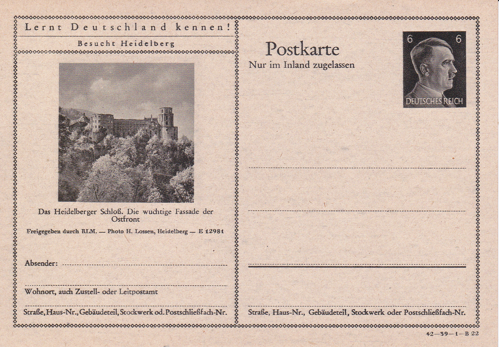 Es gibt noch eine letzte Bildpostkarte mit dem Heidelberger Schloß (Serie 39 Bild 22)