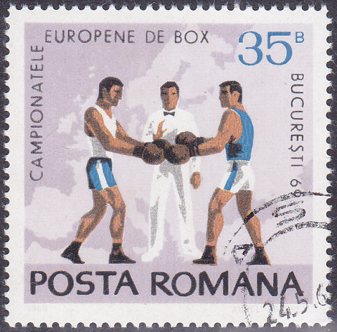 In Rumänien ist in einer Serie diese Marke (MiNr 2767) mit zwei Boxer bei Kampfbeginn dargestellt.