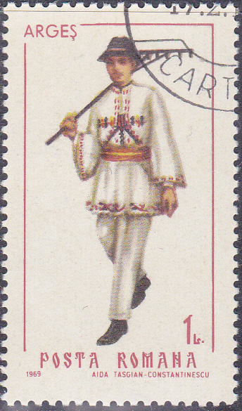 Diese Marke (MiNr 2742) zeigt die dazu passende Männertracht aus Argeș.