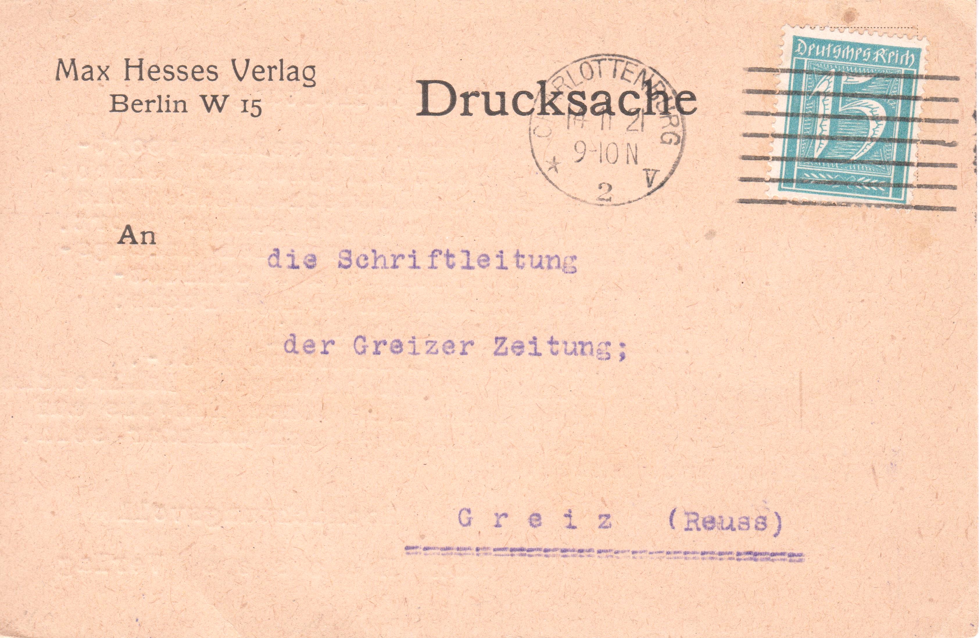 Den Anfang macht eine Postkarte mit Zusatzfrankatur der Wertstufen 30 Pf sowie zweimal 40 Pf: