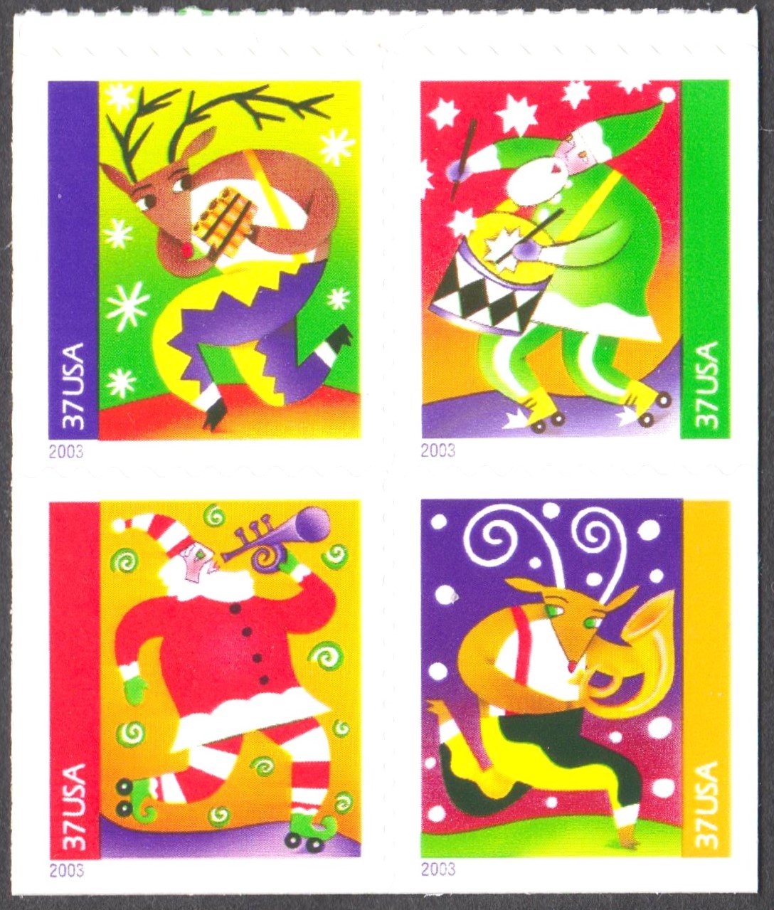 2003 erschienen in den USA Weihnachtsmarken "Holiday Music Makers", USA MiNr. 3792-3795, in Markenheftchen mit selbstklebenden Marken der Wertstufe 37 (C) in kleinerem Format USA MiNr. 3788-3791: