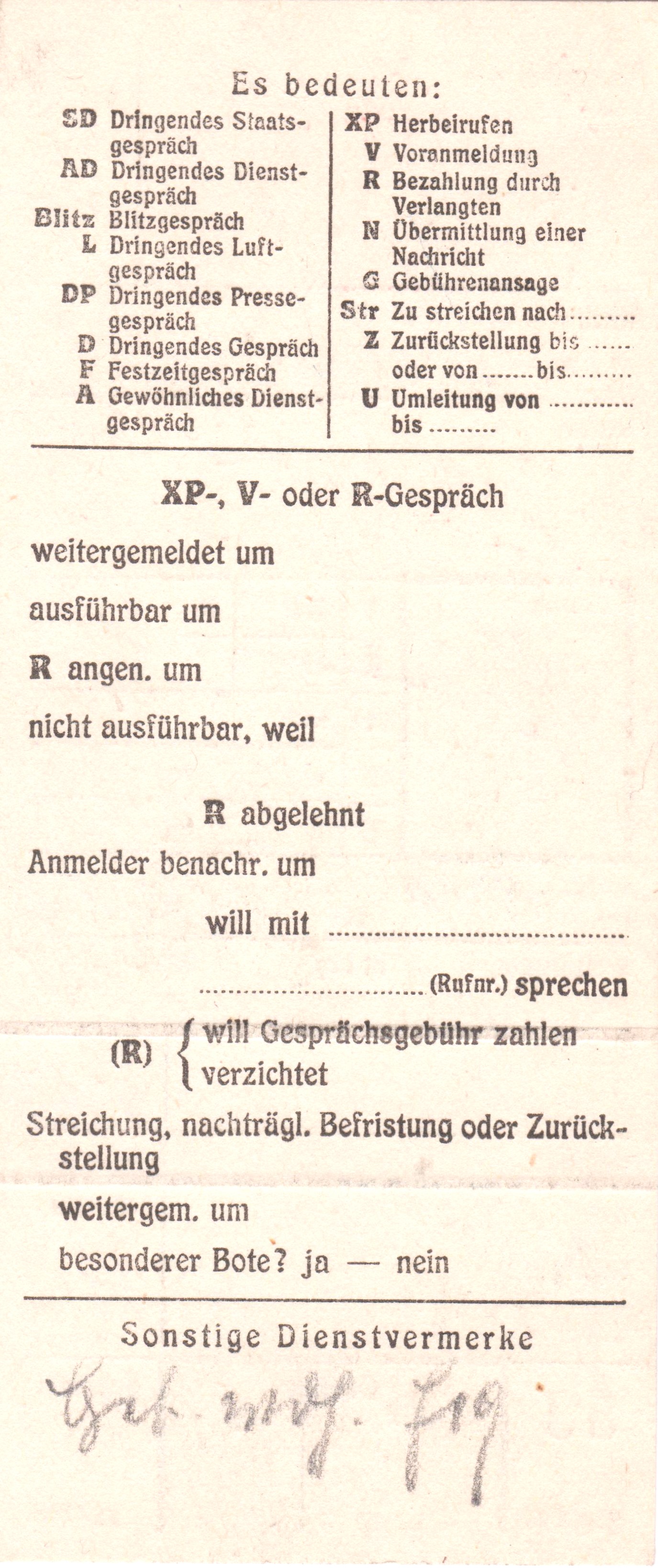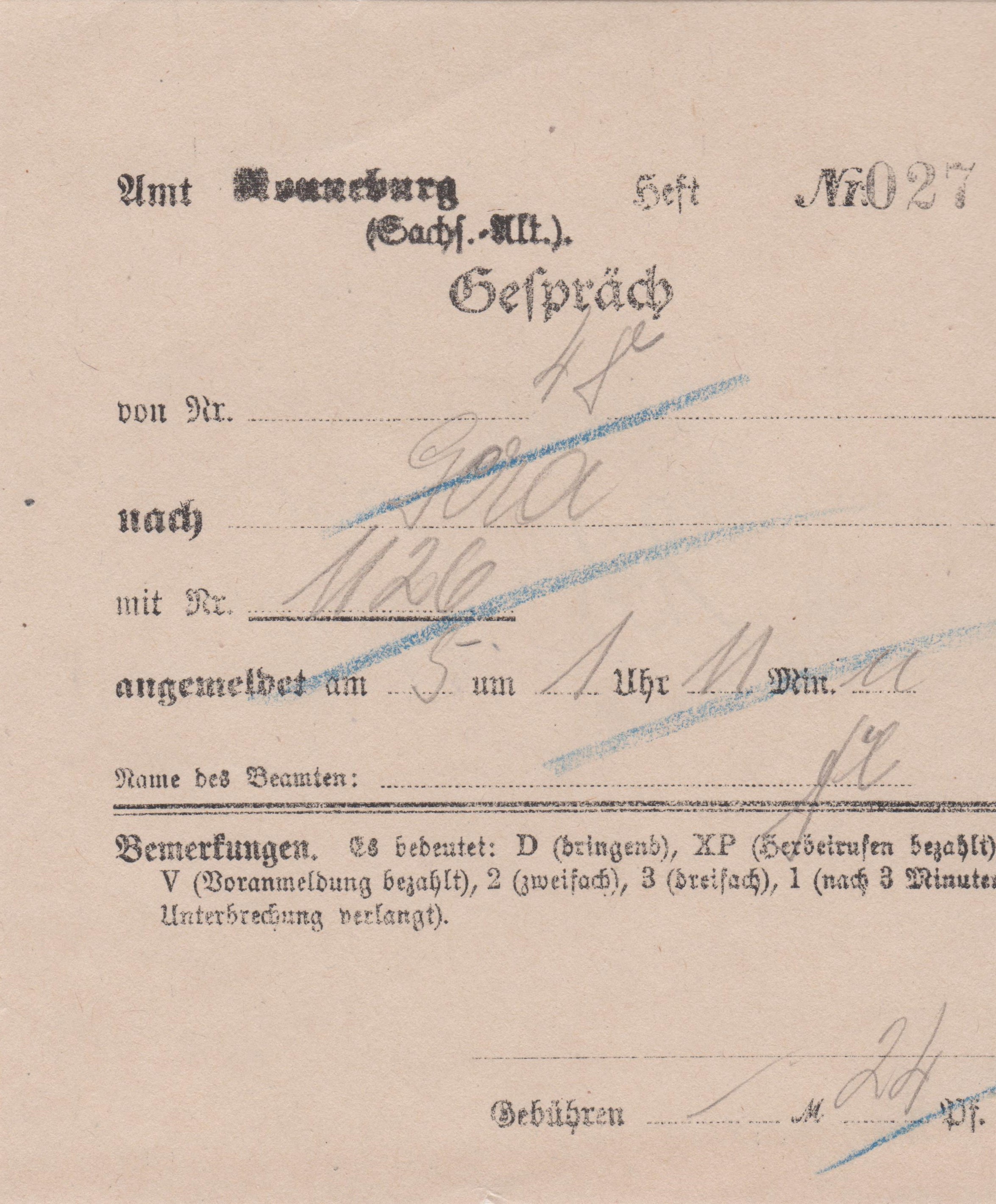 Solche Formulare "Mitteilung über Telefonanschluß" beförderte die Post gebührenfrei!