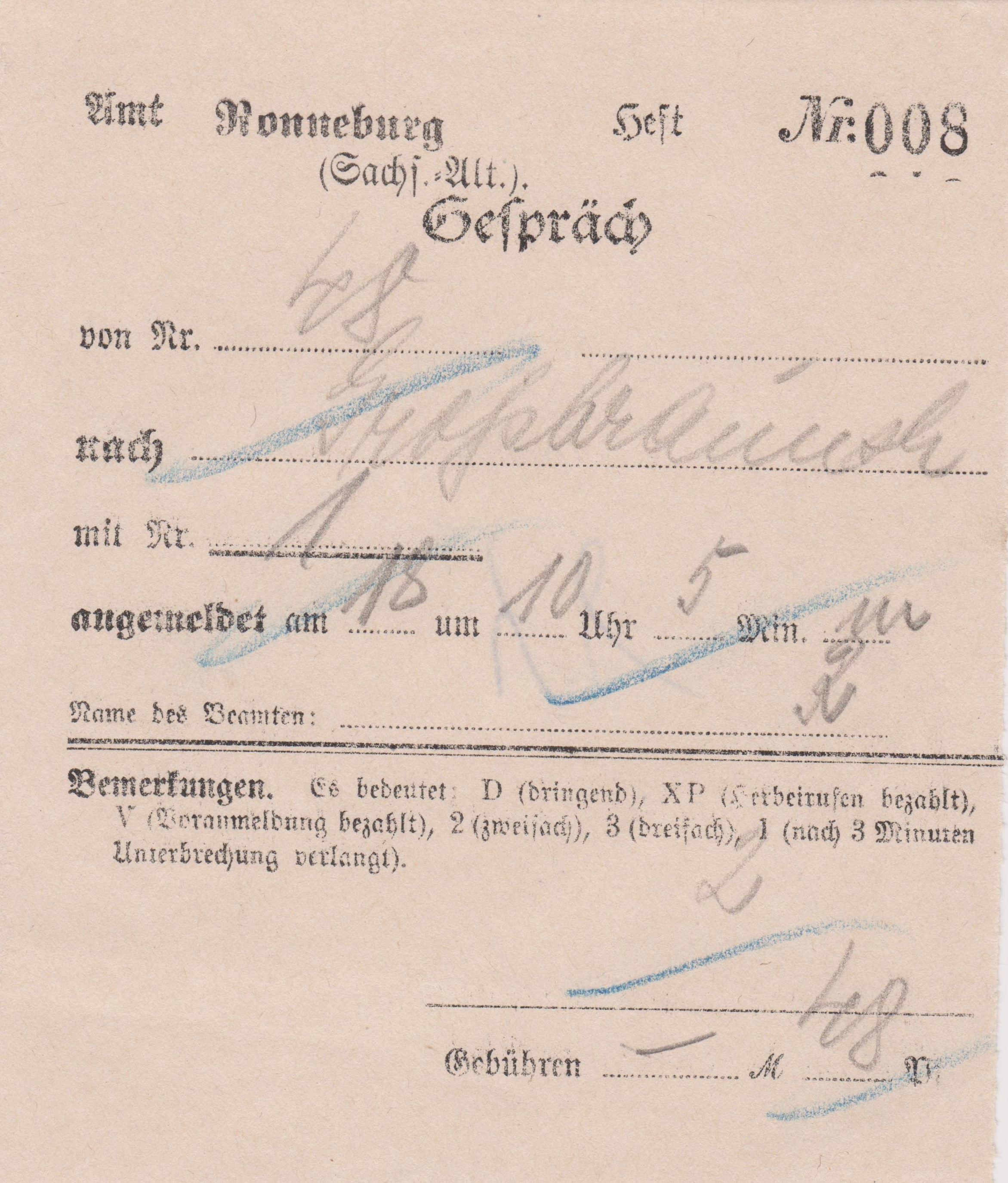 Es handelt sich um eine "Quittung über Fernsprechgebühren" aus RONNEBURG in Sachsen-Anhalt mit Tagesstempel vom 01.01.1919: