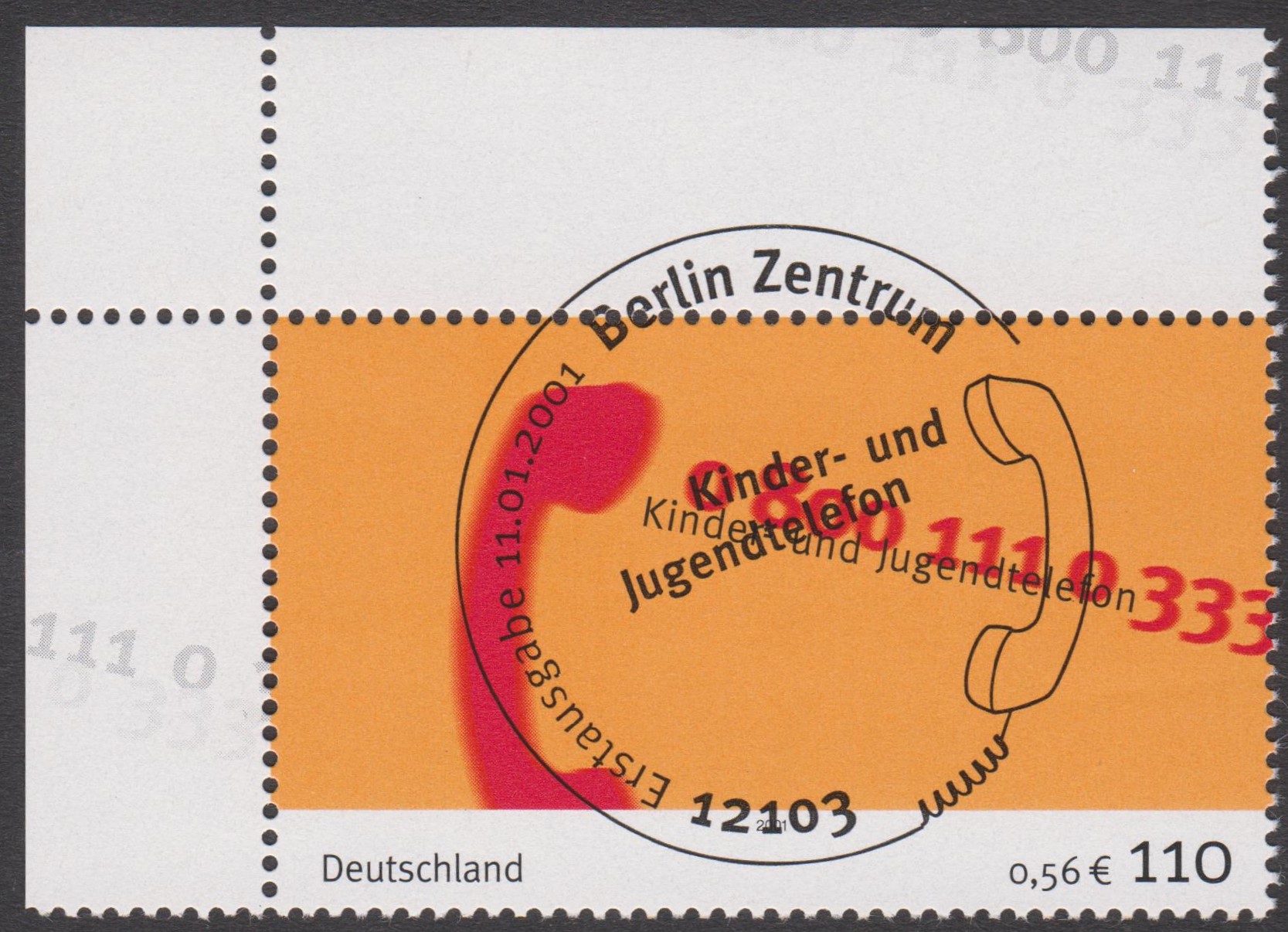 Bogenecken oben links (= Feld 1 des Zehnerbogens) sowie oben rechts (= Feld 2 des Zehnerbogens) der Bund MiNr. 2164 mit ESST Berlin: