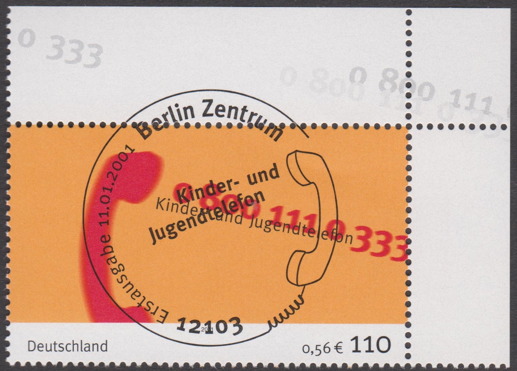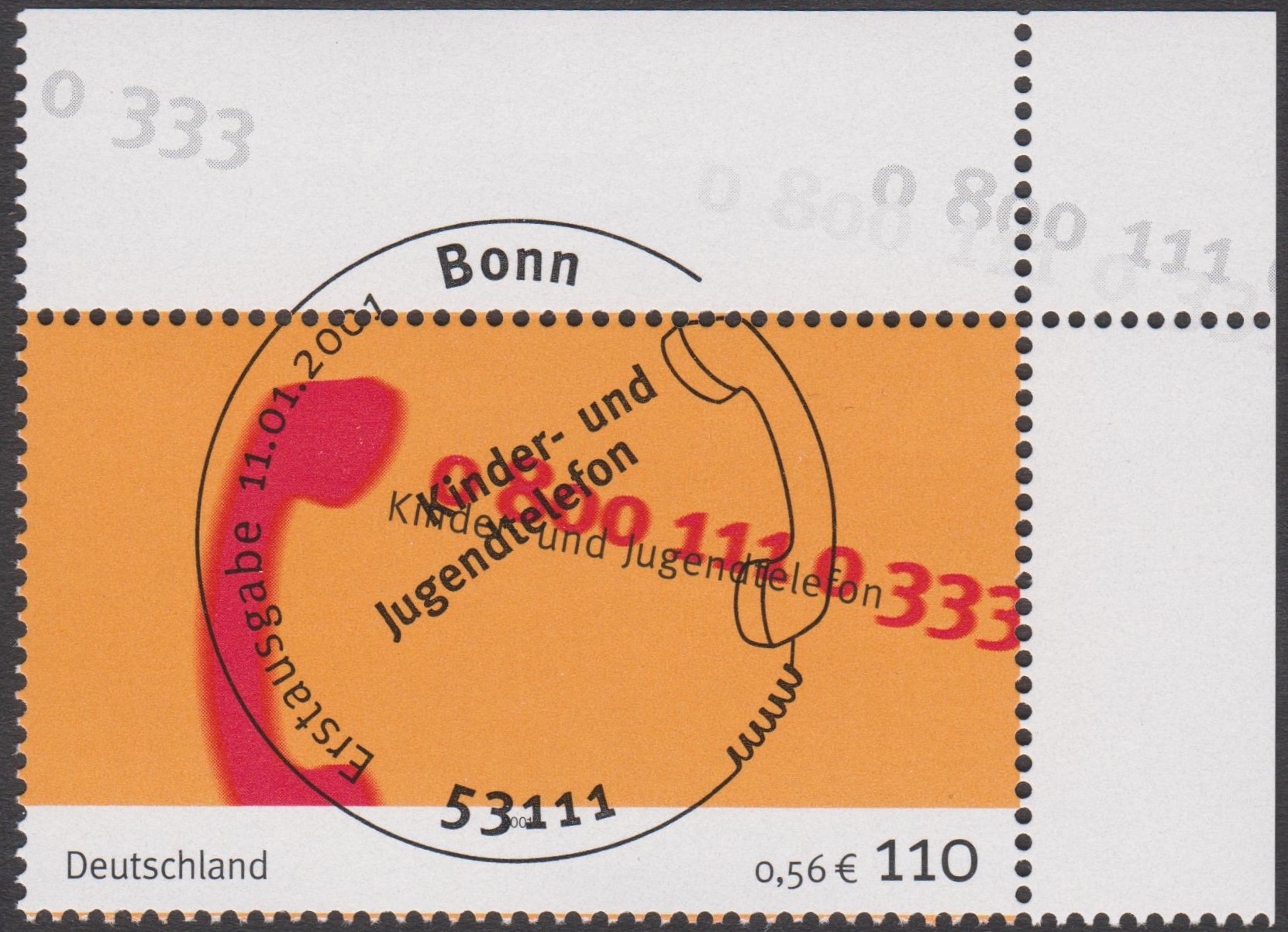 Bogenecke oben rechts (= Feld 2 des Zehnerbogens) der Bund MiNr. 2164 mit ESST Bonn: