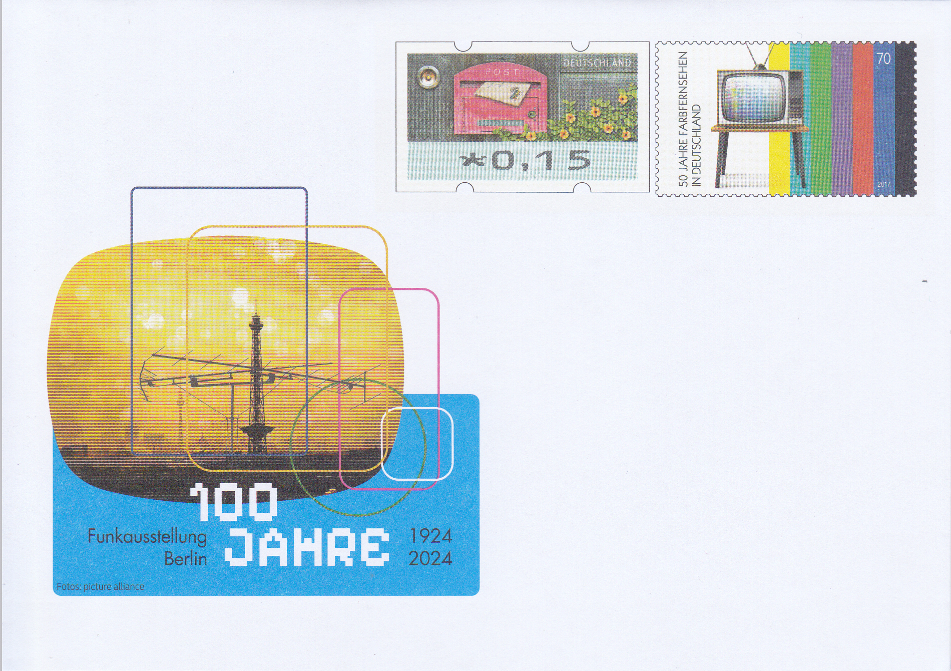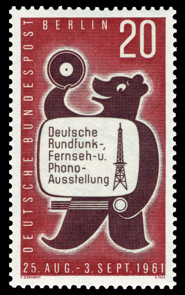 1955 wurde die Funkausstellung ein weiteres Mal in Düsseldorf sowie 1957 (20.) und 1959 die ersten Male in Frankfurt am Main veranstaltet; 1961 fand sie zum ersten Mal nach Kriegsende wieder in Berlin statt, was dieses Postwertzeichen sowie dieser Beleg dokumentieren: