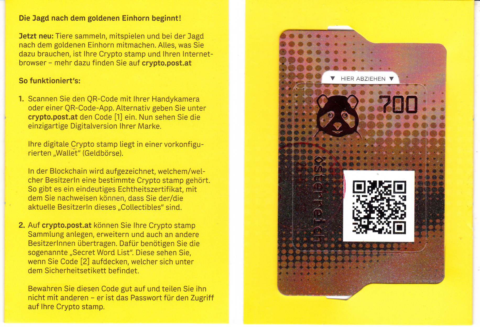 Dieser "Block" wurde von der Post Österreichs in eine mit einem Klebestreifen verschlossenen Kartonhülle verkauft. Wenn der Verschlussstreifen entfernt wurde ist auf Vorder- und Rückseite das Wort "geöffnet" zu lesen.