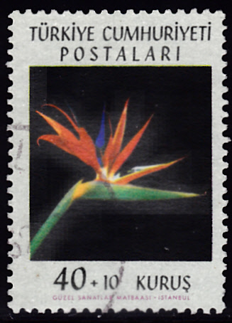 Aus der Türkei kommt diese Marke (MiNr 1834) mit einer Paradiesvogelblume (Strelitzia reginae).