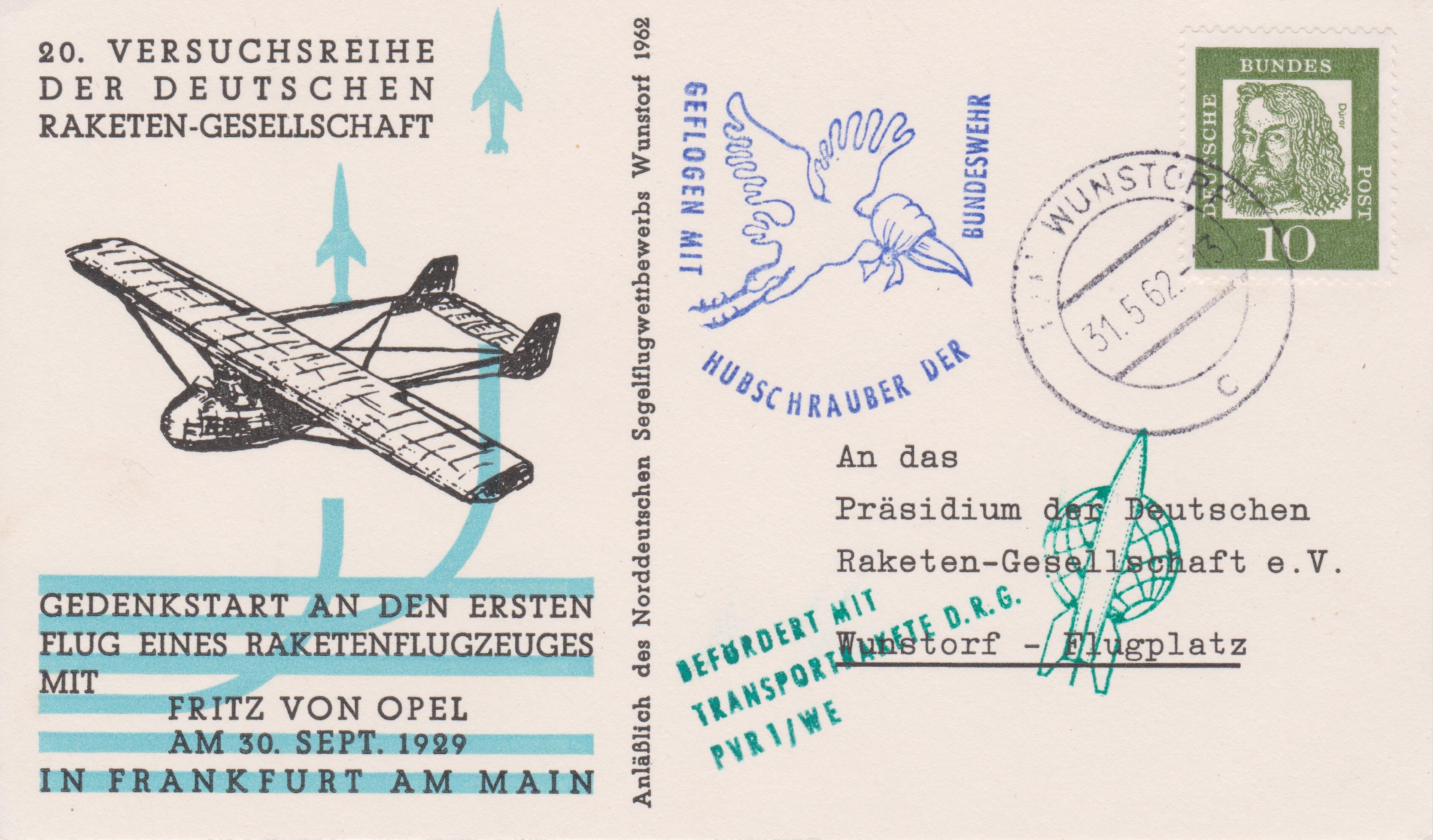 Bund Raketenpost DRG Transportrakete PVR1/WE 20. Versuchsreihe am31.05.1961 in WUNSTORF: