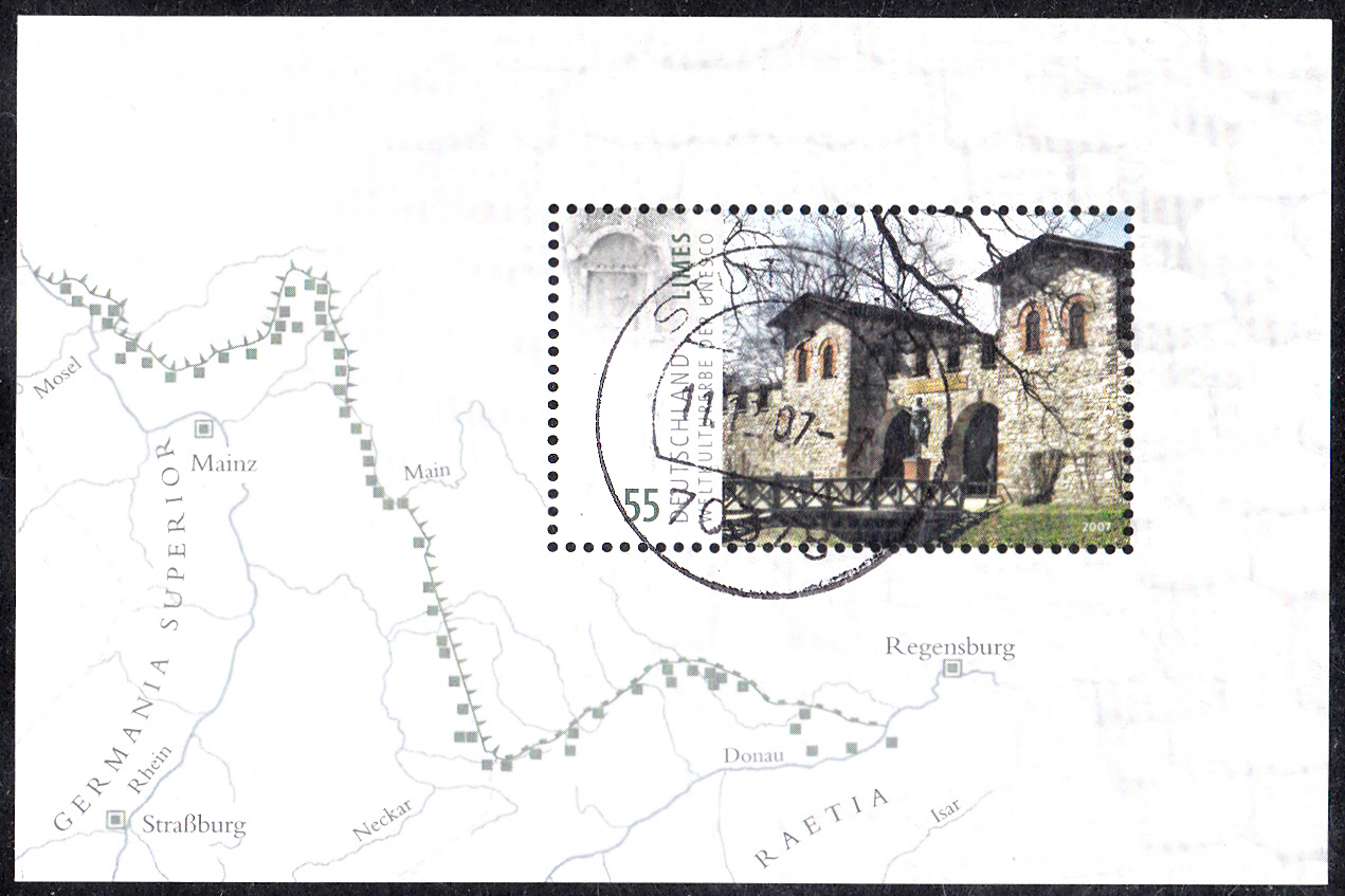 In der Reihe "UNESCO-Welterbe" erschien bei der Deutschen Post im Jahre 2007 ein Block (MiNr Block 72) mit einer Marke (MiNr 2623). Die Marke zeigt die Porta Praetoria der Saalburg, eine Rekonstruktion eines Römerkastells am Limes (Die Saalburg ist ein auf dem Taunuskamm nordwestlich von Bad Homburg vor der Höhe gelegenes ehemaliges Kastell des römischen Limes) und links oben Luftbild einer archäologischen Ausgrabungsstätte in Aalen. Auf dem Blockrand ist eine Landkarte mit dem Verlauf des obergermanisch-rätischen Limes zu sehen.