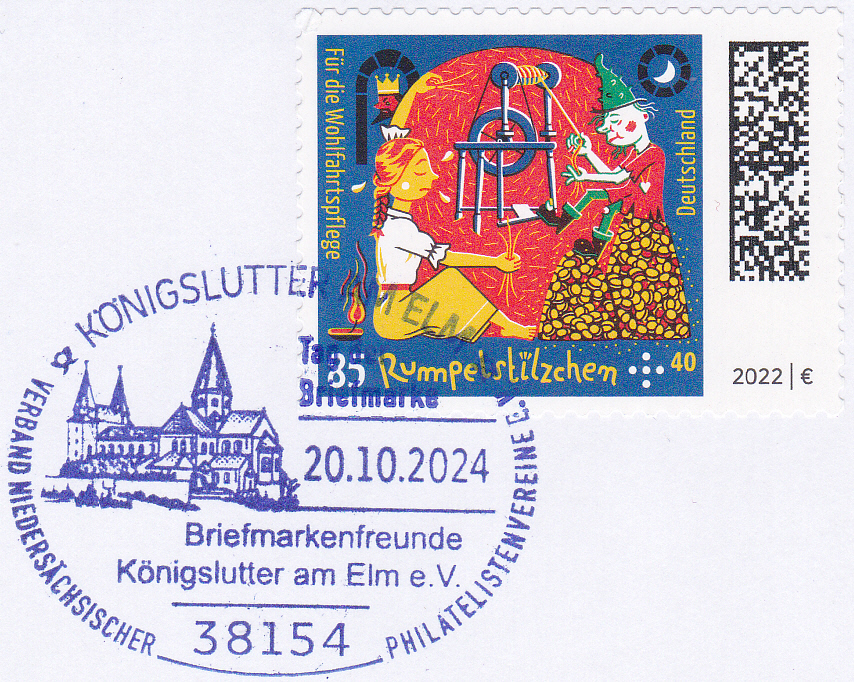 Sonderstempel vom 20.10.2024 aus Kömigslutter zum Tag der Briefmarke 2024 des Verbandes Niedersächsischer Philatelistenvereine e.V. mit dem Kaiserdom in Königslutter.