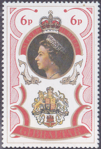 Zum Jubiläum "25 Jahre Regentschaft von Königin Elisabeth II." ist in Gibraltar diese Marke zu 6 Pence (MiNr 346 A) erschienen.