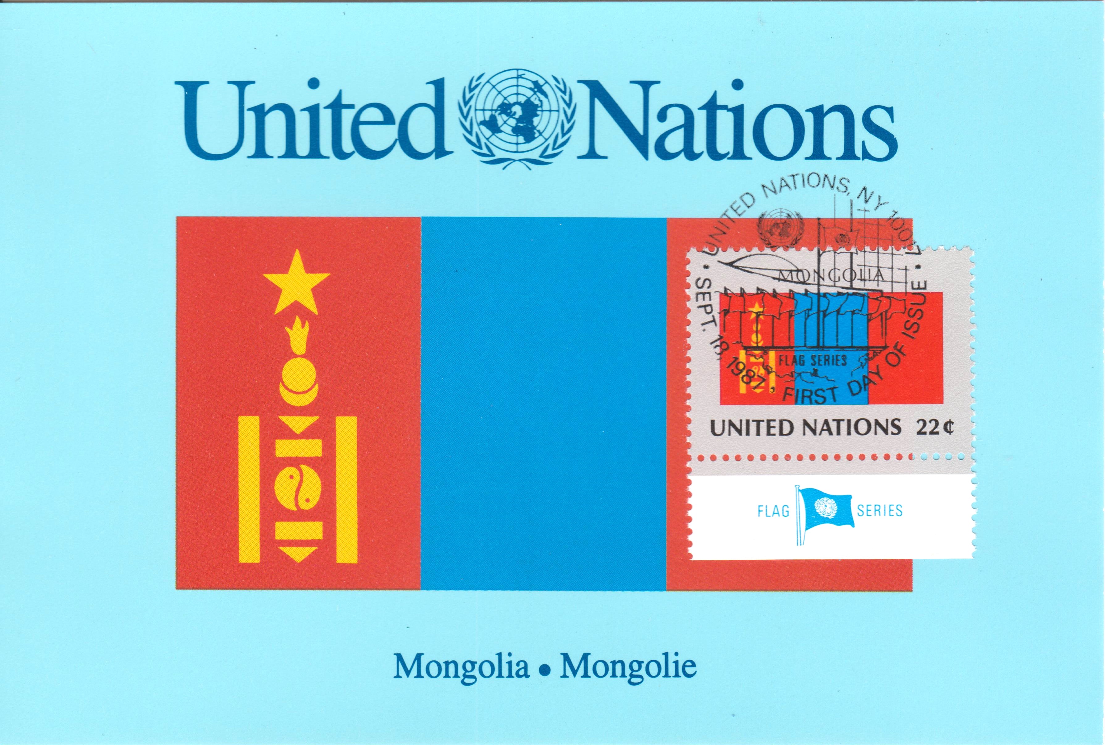Vereinte Nationen MiNr. 526 zeigt die Flagge von MOGOLIA = MONGOLEI:
