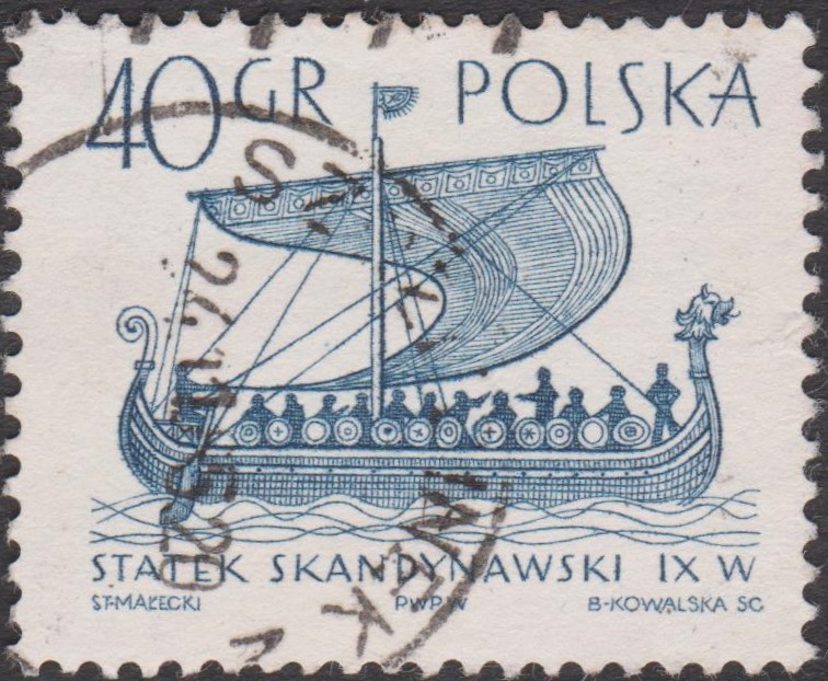 Polen MiNr. 1566 zeigt das Normannenschiff von Gokstad aus dem 9. Jahrhundert: