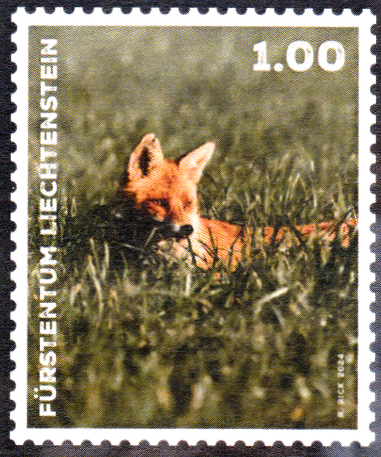 Aus Liechtenstein kommt diese Marke (MiNr 21132) mit einem weiteren Rotfuchs (Vulpes vulpes).