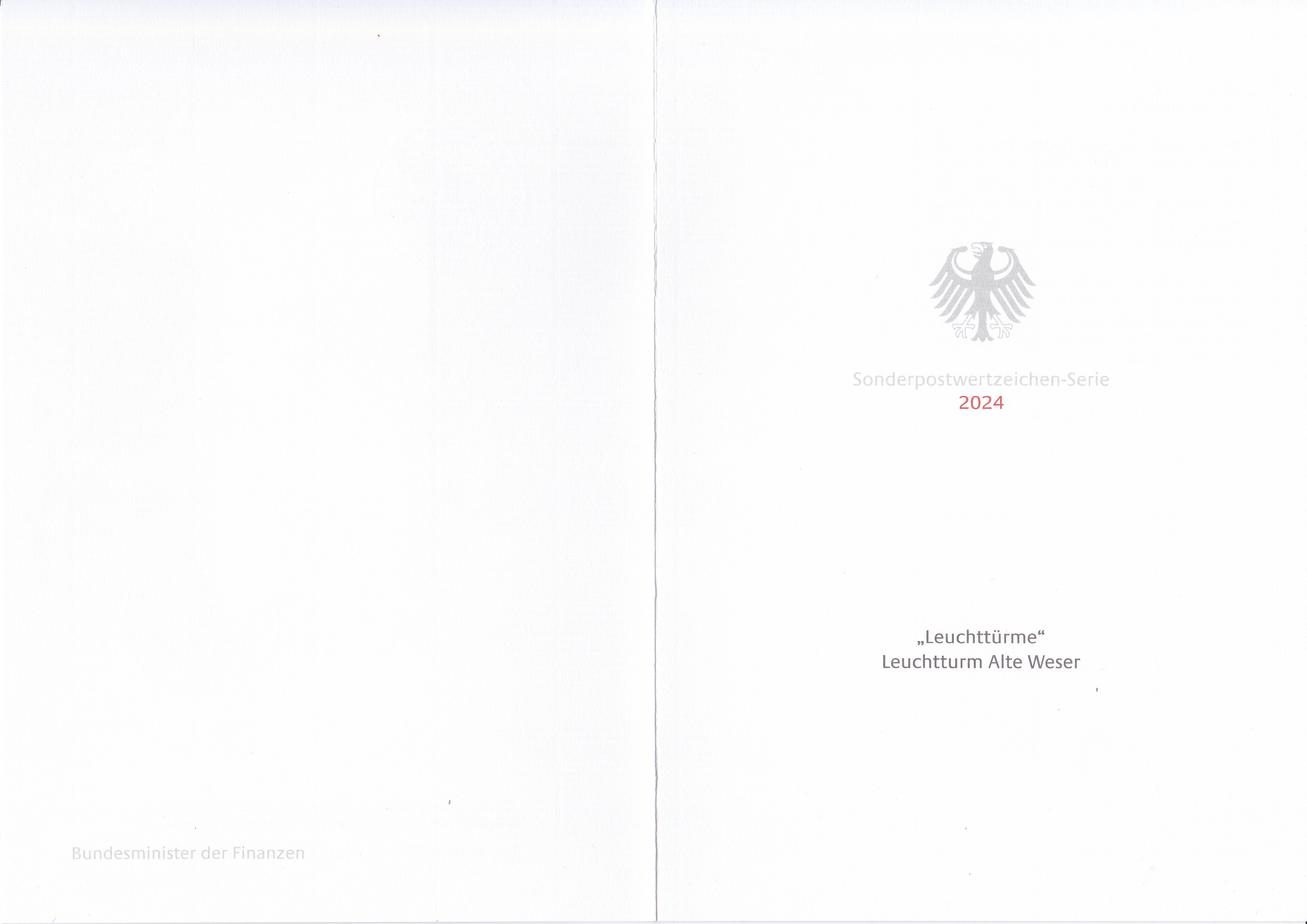 Ministerkarte des Bundesministers für Finanzen mit zwei Marken mit dem Motiv "Leuchtturm Alte Weser" aus der Serie "Leuchttürme" (MiNr 3840) und den beiden Ersttagsonderstempel Bonn und Berlin.