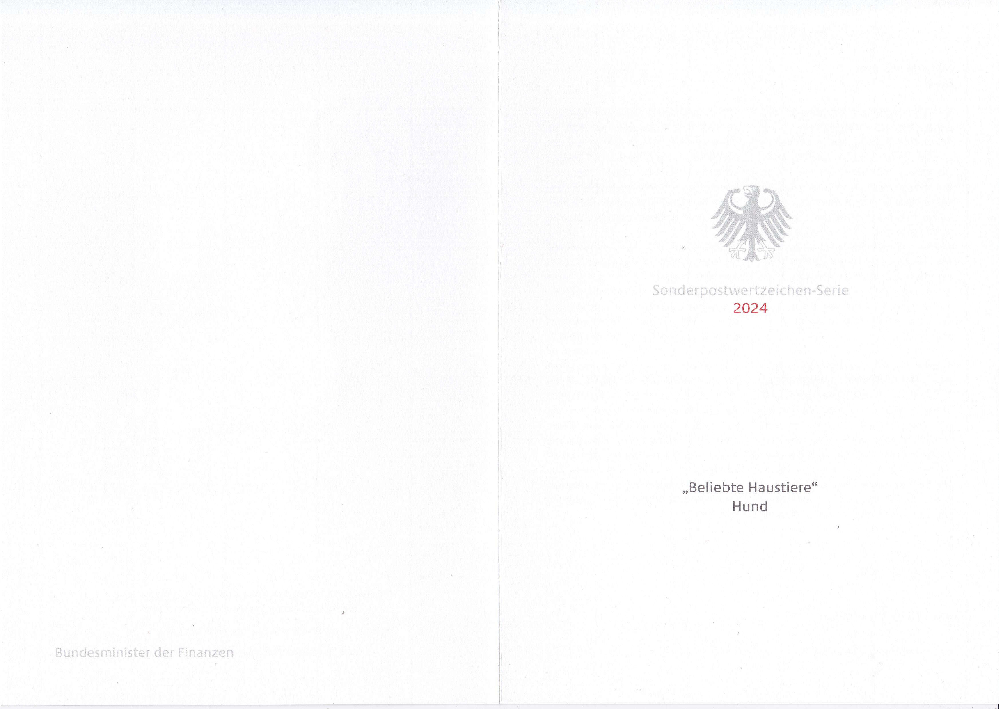 Ministerkarte des Bundesministers für Finanzen mit zwei Marken mit dem Motiv "Border Collie (Canis lupus familiaris)" aus der Serie "Haustiere" (MiNr 3837) und den beiden Ersttagsonderstempel Bonn und Berlin.