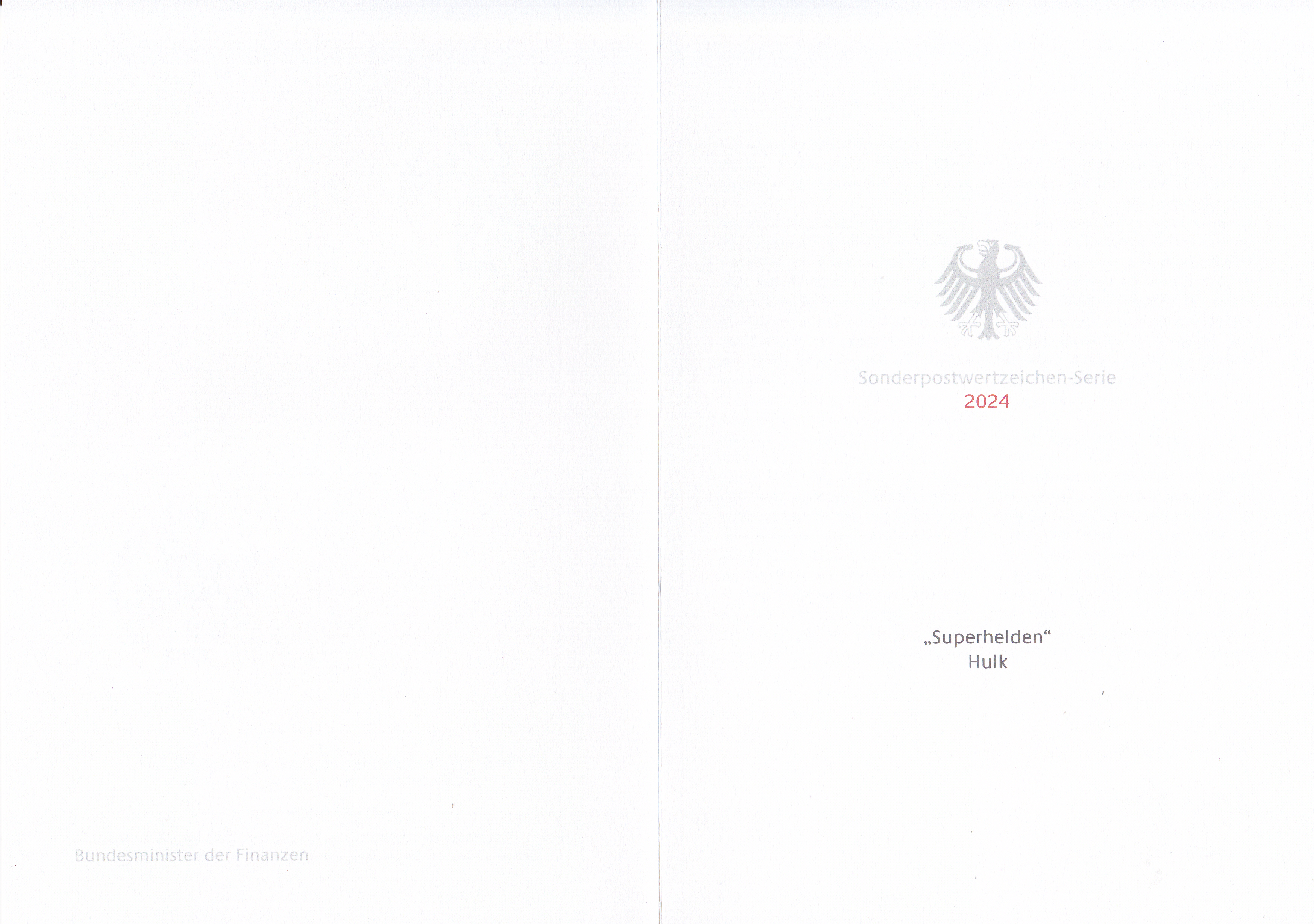 Ministerkarte des Bundesministers für Finanzen mit zwei Marken mit dem Motiv "Der unglaubliche Hulk" aus der Serie "Superhelden" (MiNr 3847) und den beiden Ersttagsonderstempel Bonn und Berlin.