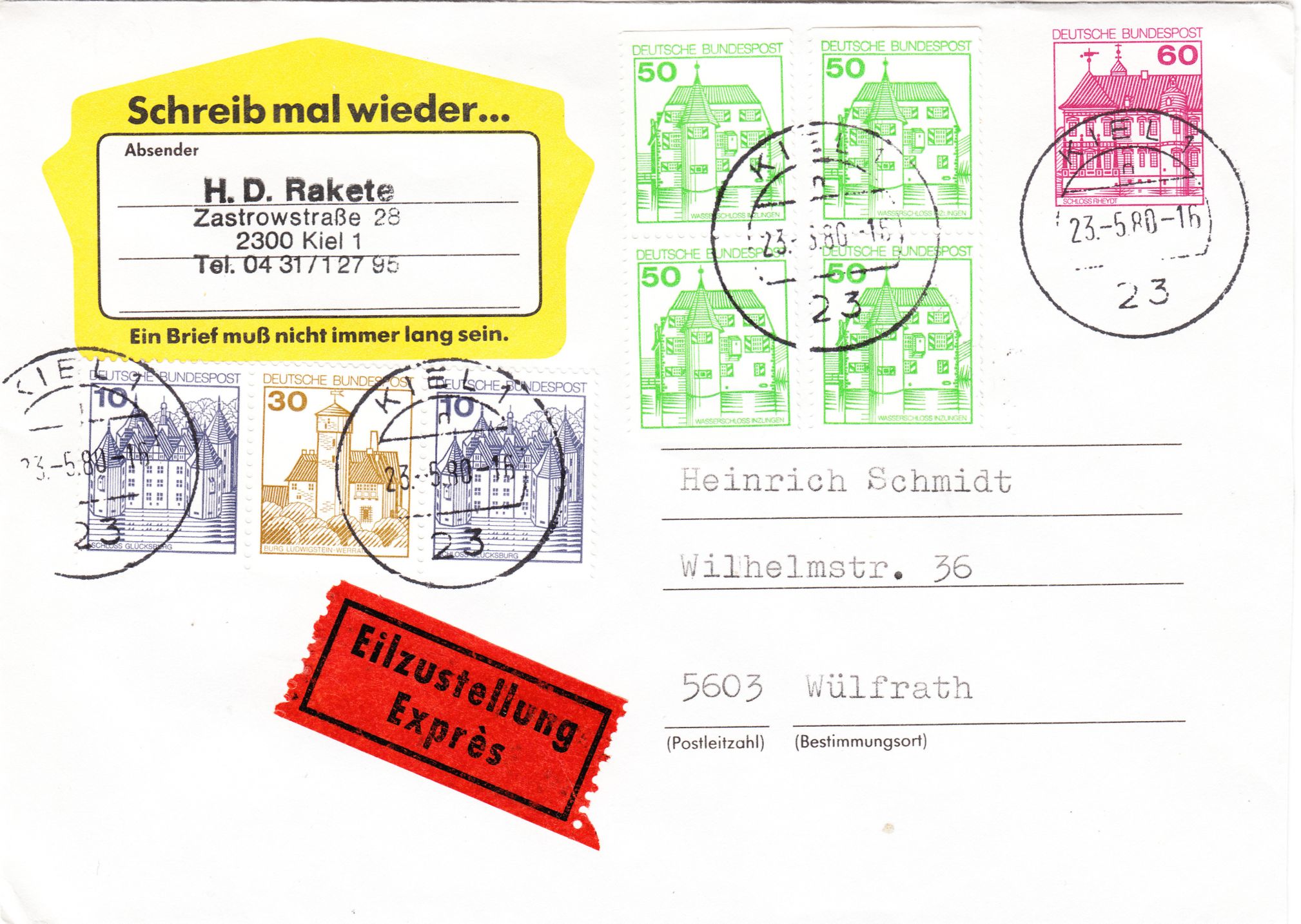 Dieser Beleg stammt von einem solchen Sonderpostamt in Kassel am 03.10.1982 als Letzttag der 22. Kasseler Herbstausstellung, leicht zu erkennen am "SPA" im Tagesstempel: