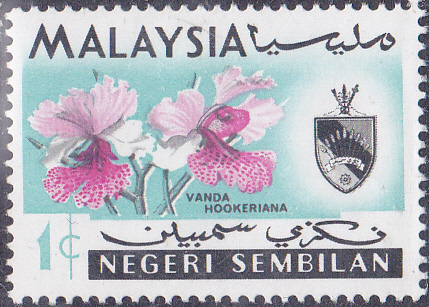 In den Malaiische Staaten V Malaienstaaten, Johor ist diese Marke (MiNr 154) mit Blüten der Papilionanthe hookeriana (Syn.: Vanda hookeriana; Vanda Hookeri) erschienen.