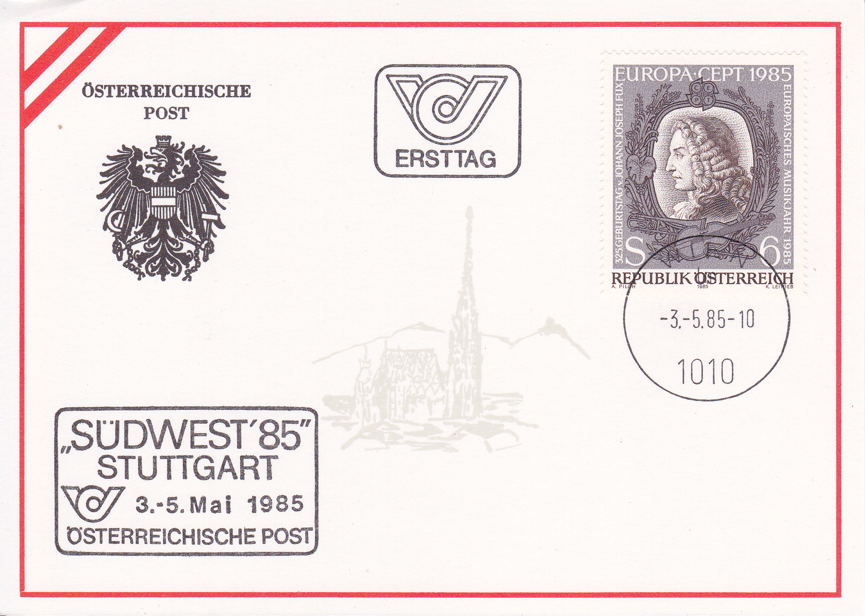 Die Europamarke 1985 aus Österreich (MiNr 1711) zeigt ein Porträt von Johann Joseph Fux.