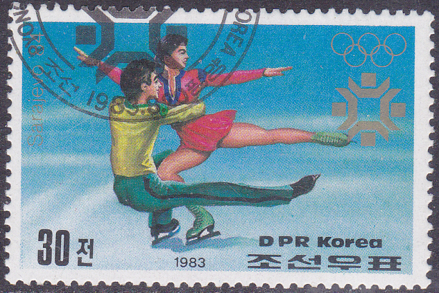 Sonderstempel aus Sarajewo vom 10.2.1984 zu den Wettbewerben im Eiskunstlaufen. Im Stempelbild sind ein Eiskunstläufer und Eislaufpaar abgebildet.