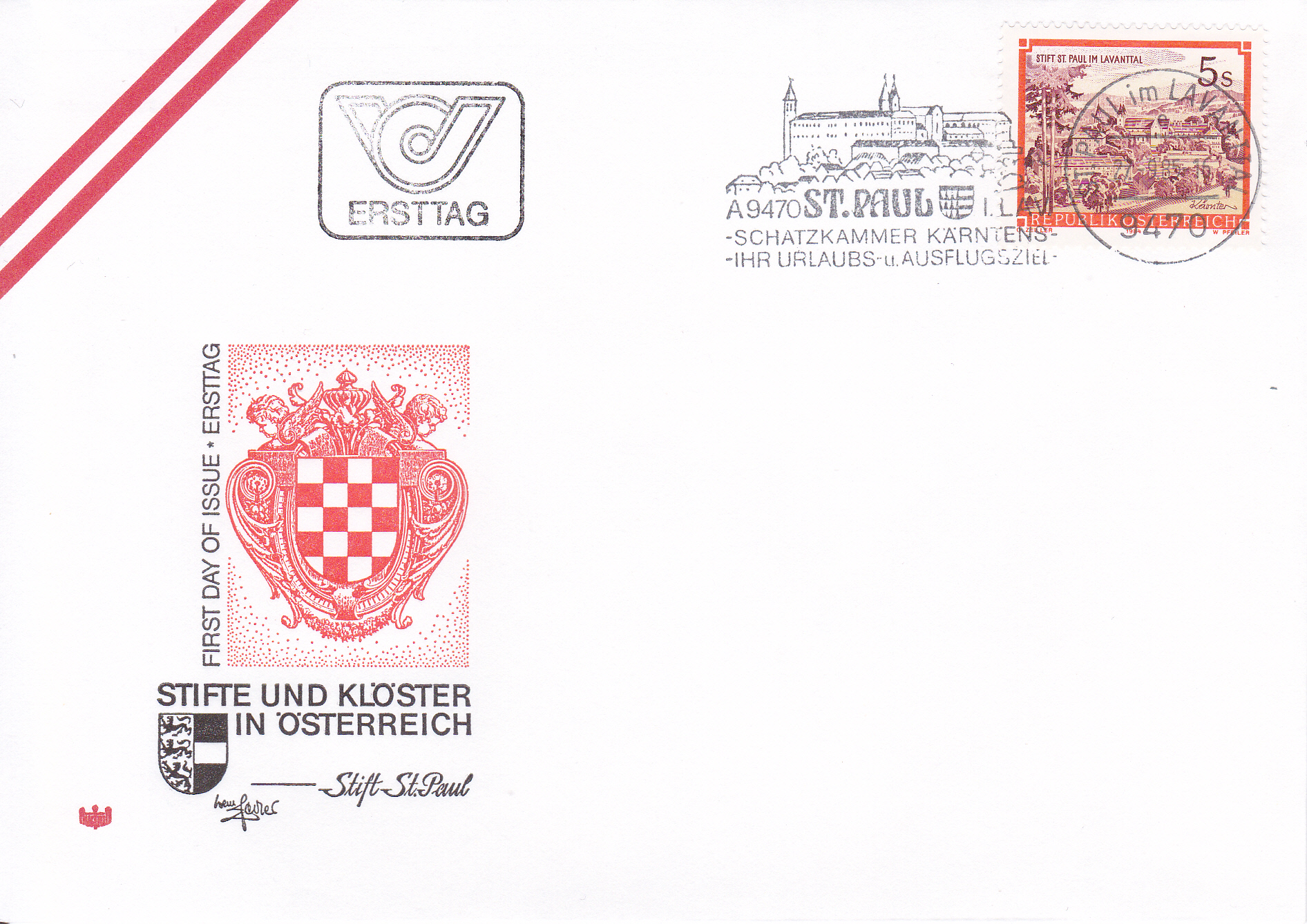 In der Freimarken-Serie "Stifte und Klöster in Österreich" erschien in Österreich diese Marke (MiNr 1827) mit dem Stift St. Paul im Lavanttal.