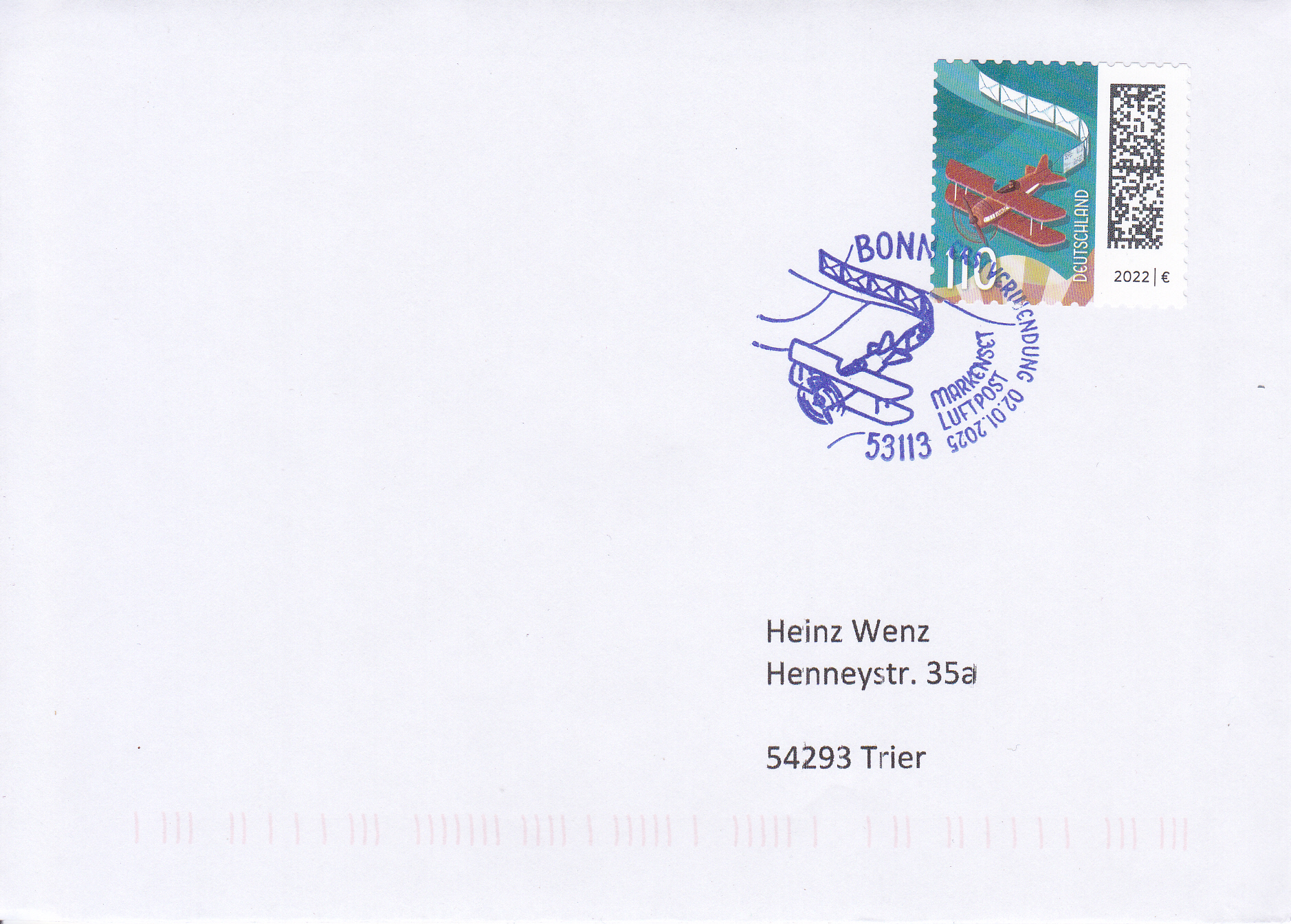 Für die selbstklebende Marke wurde in Bonn auch ein Erstverwendungsstempel eingesetzt.