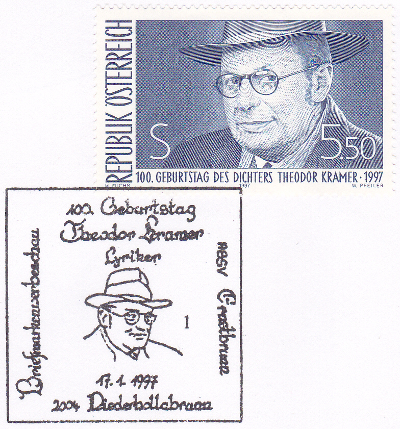 Zum 100. Geburtstag von Theodor Kramer erschien in Österreich ein Marke (MiNr 2209) mit seinem Porträt.