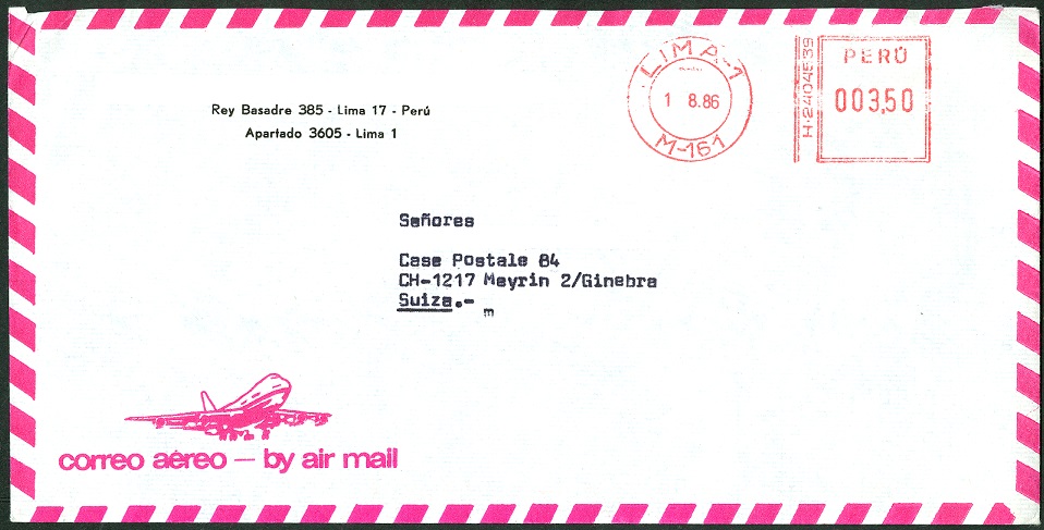 Die Frankatur zeigt Augusto Bernardino Leguía y Salcedo (* 19.02.1863 in Lambayeque; † 07.02.1932 in Lima).