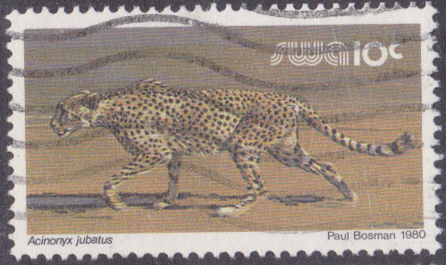 Aus einer Serie aus Südwestafrika kommt diese Marke (MiNr 485) mit einem Gepard (Acinonyx jubatus).