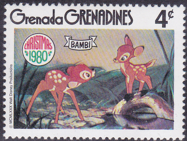 In Grenada/Grenadinen ist in einer Serie diese Marke (MiNr 418) erschienen. Sie zeigt eine Szene zu "Bambi ist geboren".