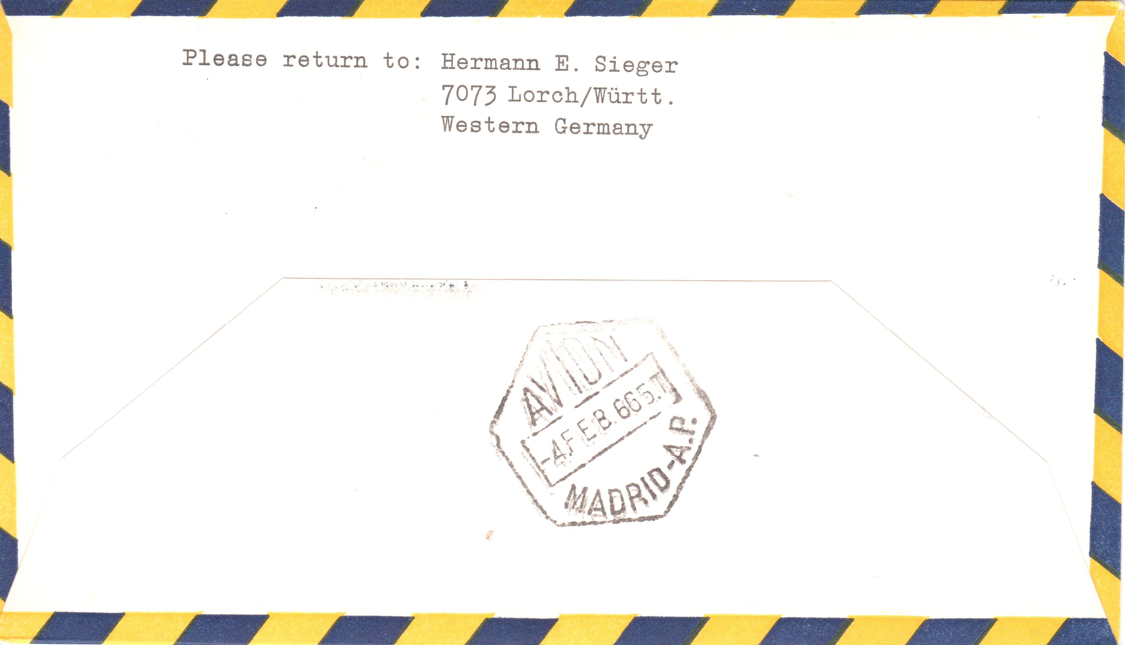 Dieser Beleg wurde mit einer BOEING B727 EUROPA-JET auf dem Lufthansa-Flug LH 380 befördert: