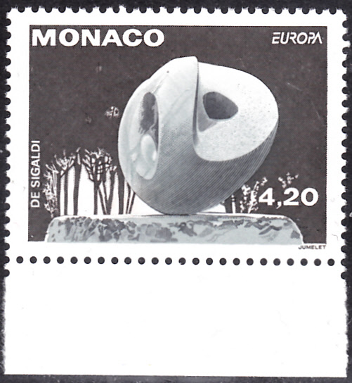 Auf einer Europamarke 1993 aus Monaco (MiNr 2121 A) ist die Skulptur "Evolution" von Emma de Sigaldi abgebildet.