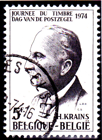 Ein Porträt von Hubert Krains (1862-1934), ehemaliger UPU-Generalsekretär, zeigt diese Marke zum Tag der Briefmarke 1974 (MiNr 1765) aus Belgien