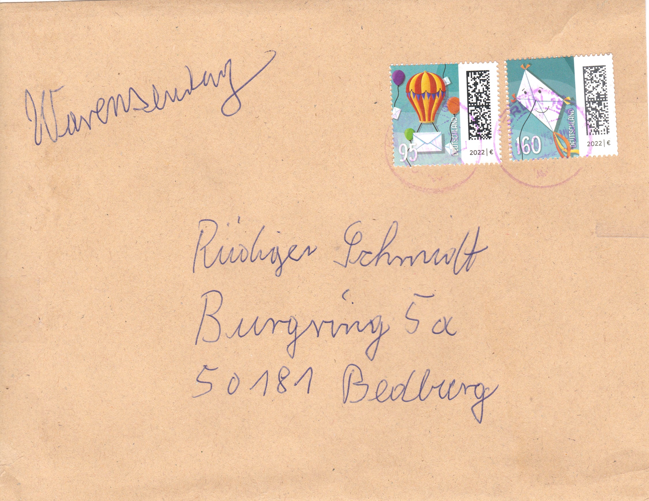 Warensendung freigemacht mit Postwertzeichen