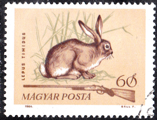Einen weiteren Schneehasen (Lepus timidus) zeigt diese Marke aus Ungarn (MiNr 2082 A).