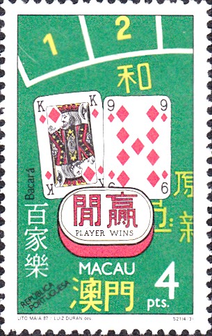 Macau MiNr. 581 aus der Serie "Glücksspiele" vom 30.9.1987 stellt dieses Glücksspiel vor: