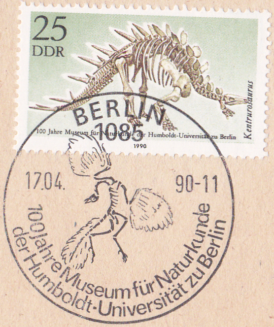 Auf der letzten Marke der Serie aus der DDR (MiNr 3328) zeigt einen Schädel des Brachiosaurus, der jetzt Giraffatitan brancai genannt wird.