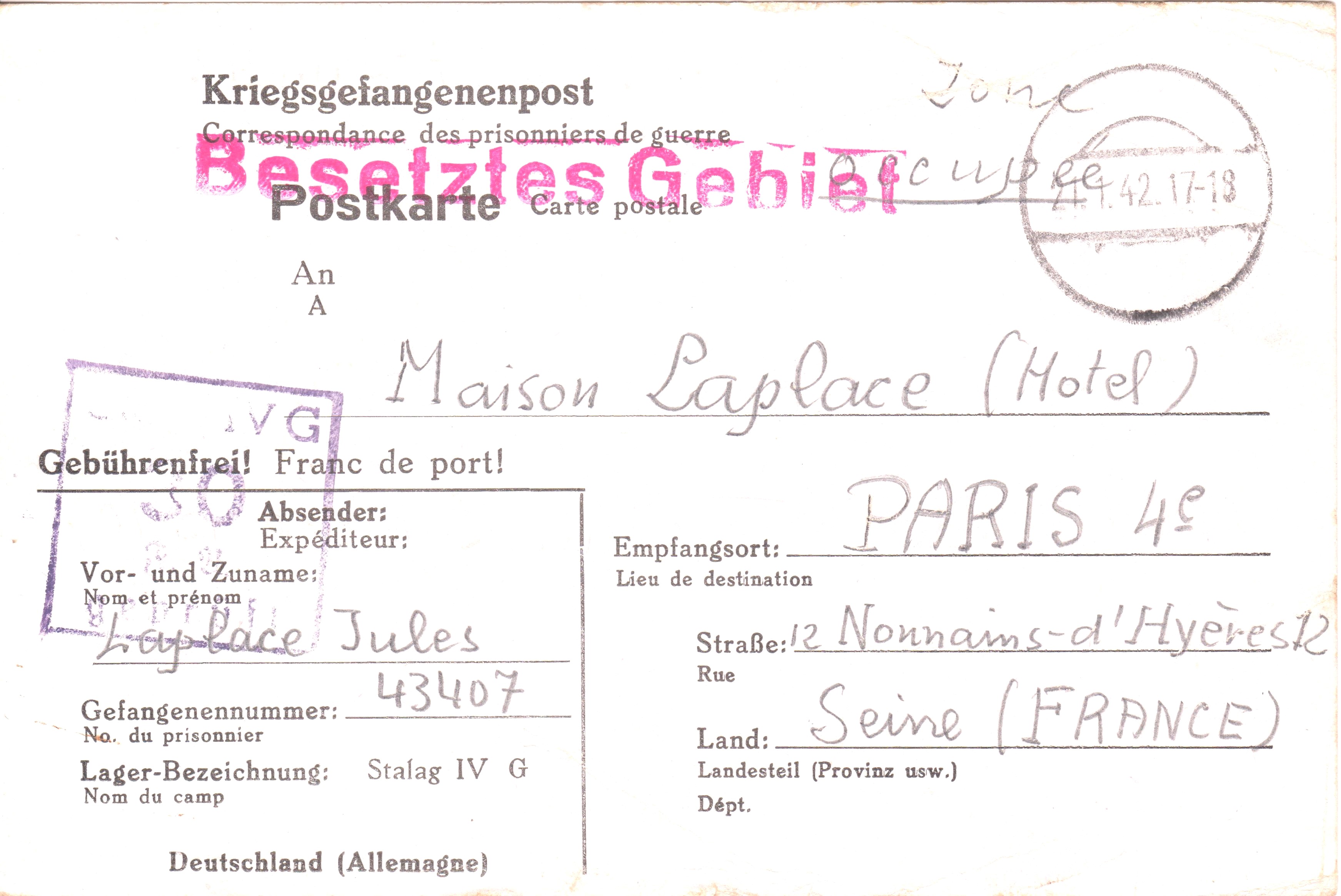 Hier eine seltene Fremdverwendung eines Postkartenvordrucks von Stalag IV B im Stalag IV G.