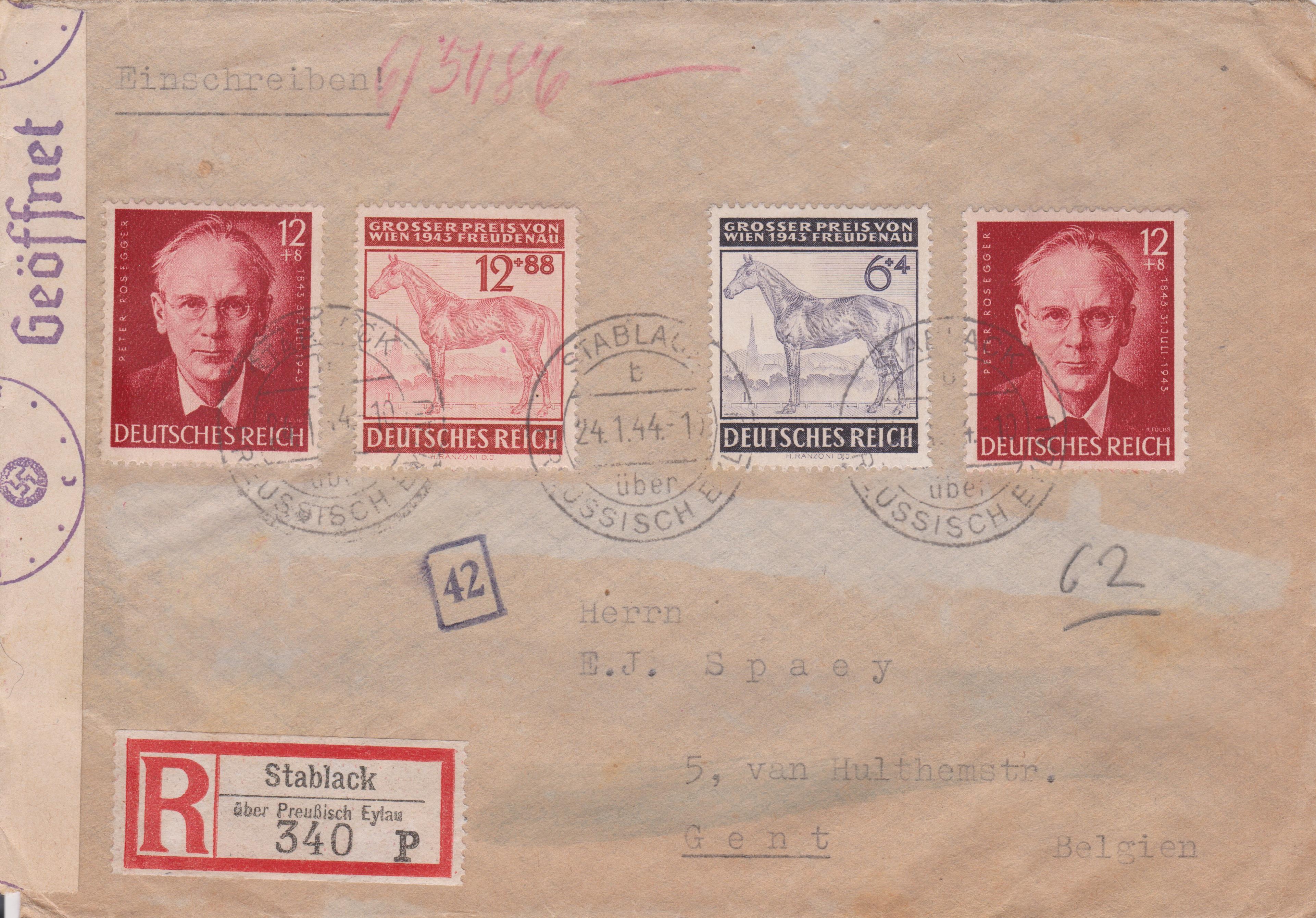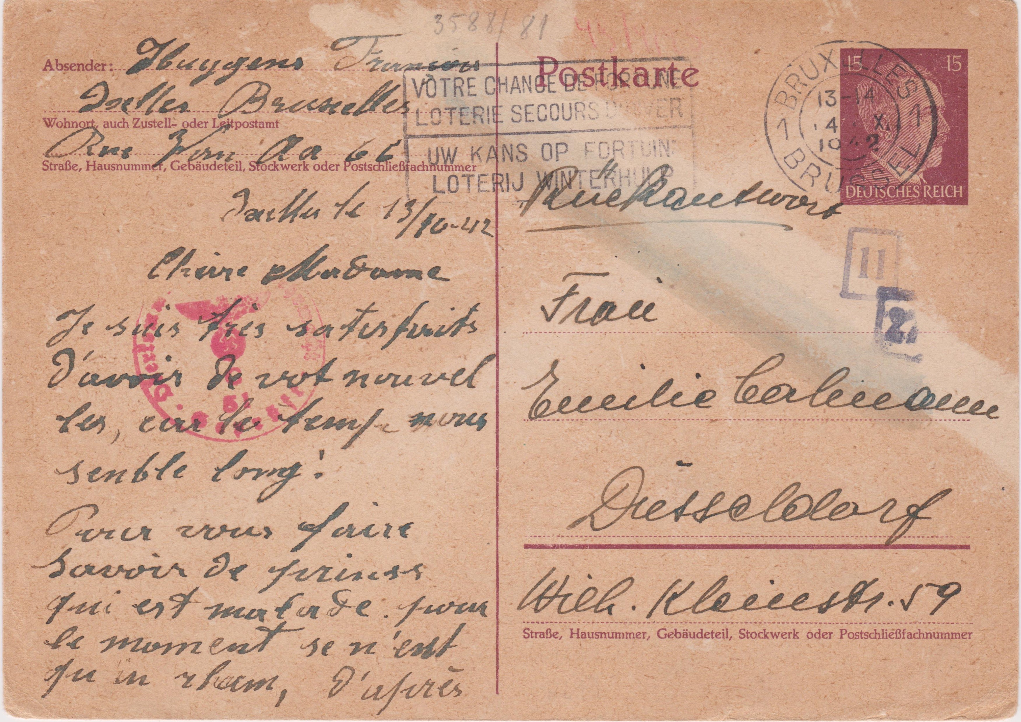 Die Sendung wurde der ABP Köln zugeleitet wo vorderseitig sowie rückseitig eine chemische Zensur per Pinselstrichen in Blau erfolgte.