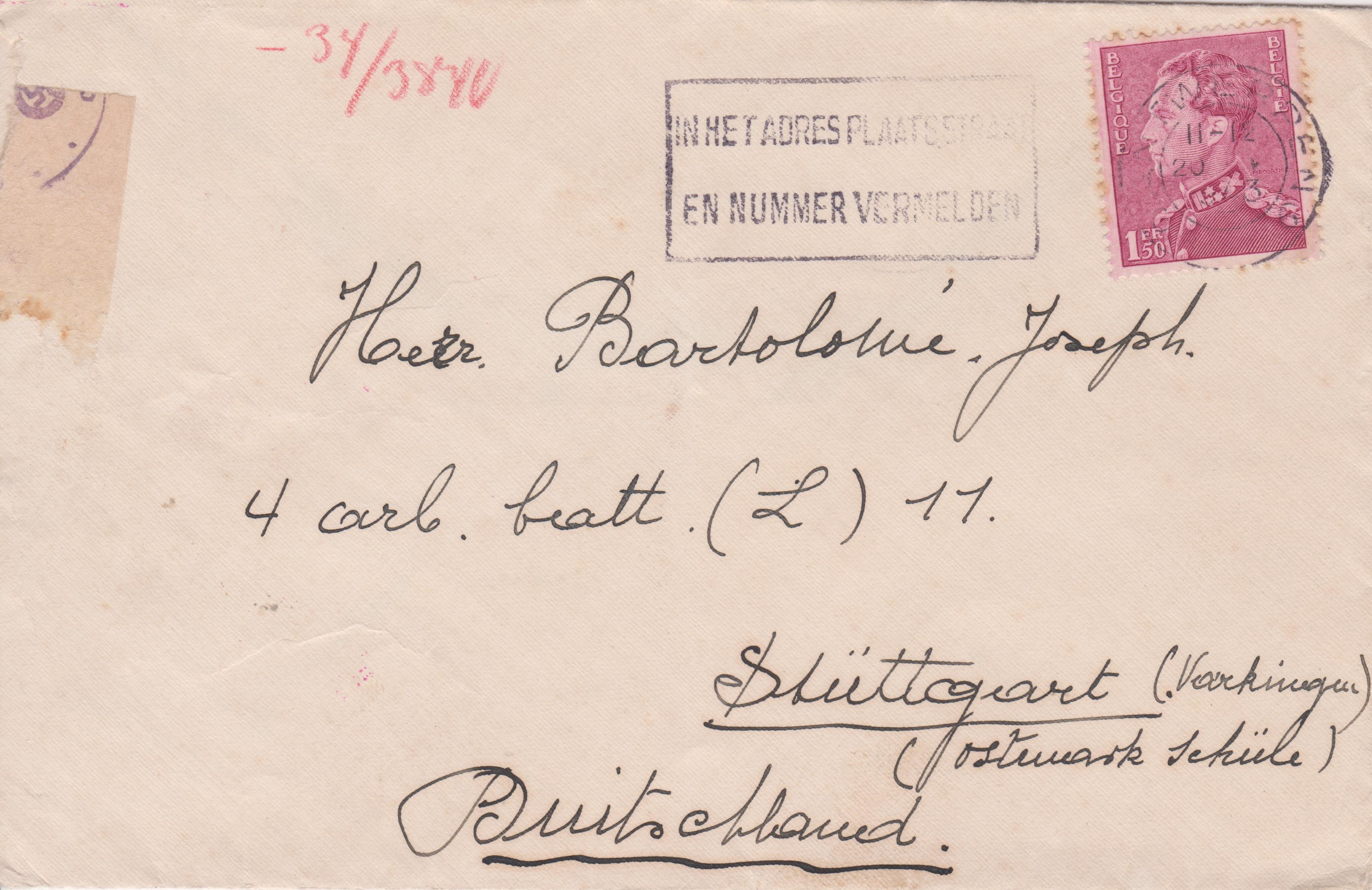 Diese Postkarte wurde adressiert nach "Brasschaat(Antwerpen)" in Belgien: