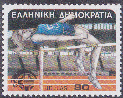 Mit dieser Marke (MiNr 1579) mit einer Hochspringerin ist die Serie komplett.