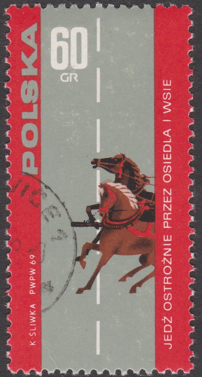 In Polen erschien am 04.10.1969 in einem Satz zum Thema Verkehrssicherheit dieses Postwertzeichen Polen MiNr. 1959: